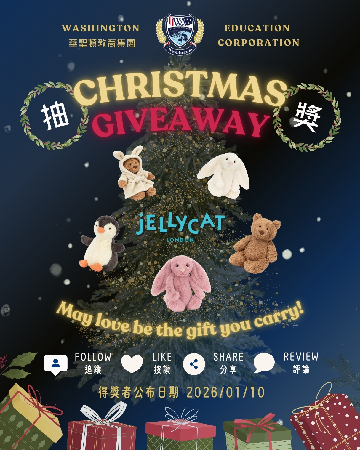 明年~華聖頓即將迎來 30 週年!這份心意獻給每一位陪伴孩子學習旅程的你。今年特別準備了大人小孩都喜愛的 Jellycat,與大家一起分享專屬於華聖頓的聖誕幸福時刻![]()